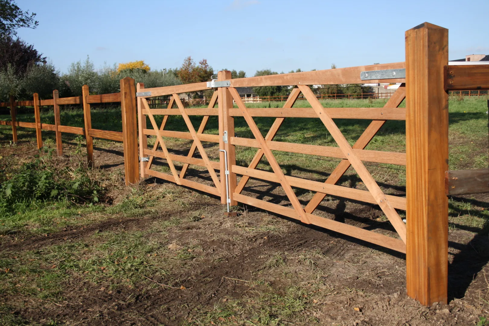 Onze weidepoorten zijn leverbaar in vele maten en worden door middel van pen en gat verbindingen verbonden, de poorten zijn standaard voorzien van een dubbel en verstelbaar geheng om evt afhangen te corrigeren. Zowel enkele als dubbele poorten zijn voorzien van 2 zware poortpalen incl beton. Er is keus uit meerdere type sluitingen.